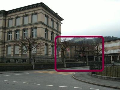 Eingang der Turnhalle Schulhaus Feld, Altstätten (von der Heidenerstrasse aus gesehen).